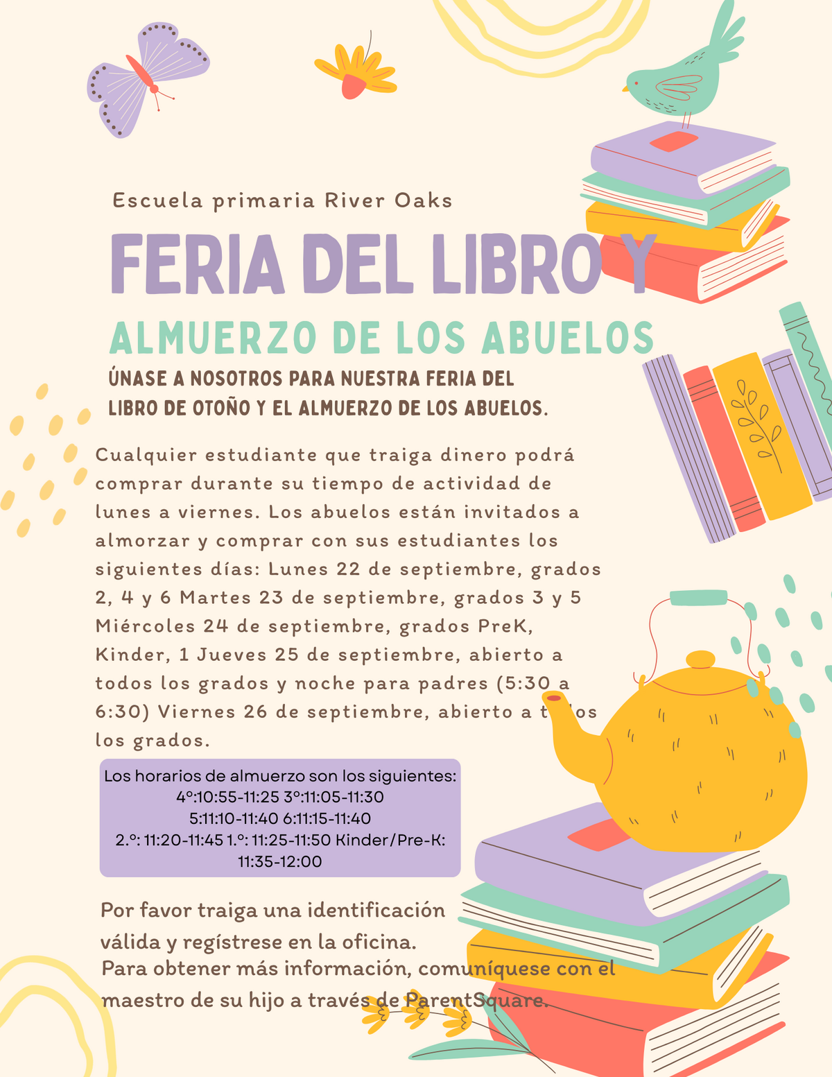 We are excited about our upcoming Book Fair and Grandparent Luncheon during the week of Sept 22-26th.